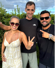 Edu Goedert comemorou seu aniversário em grande festa com amigos, família e com boa música, na foto com a namorada e o músico Nathan Malagolli.