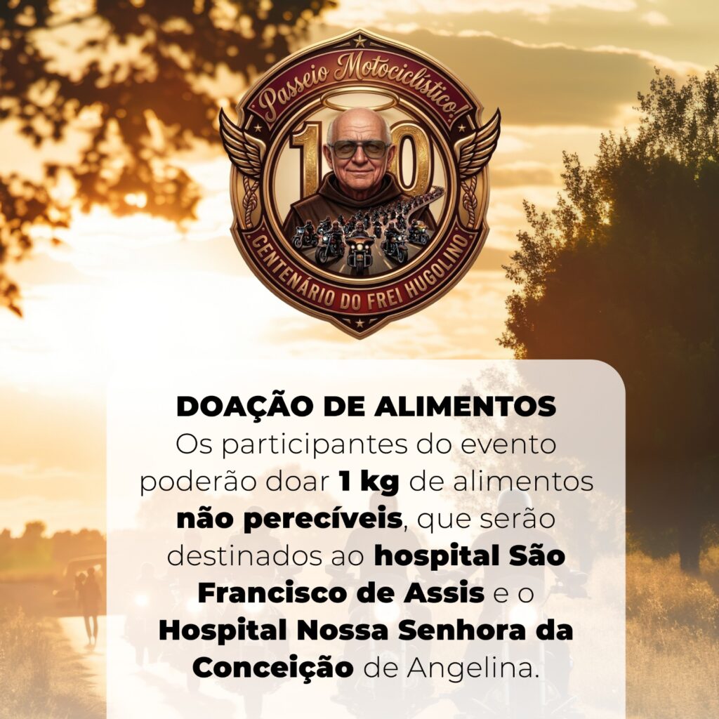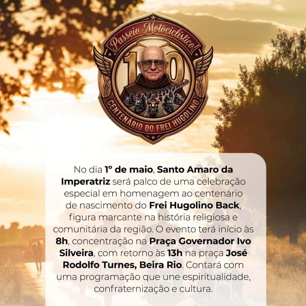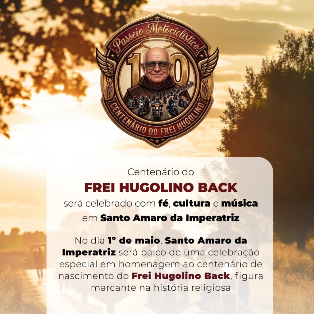Santo Amaro da Imperatriz se prepara para um grande evento que une fé, solidariedade e paixão pelas duas rodas. O Passeio Motociclístico em Homenagem ao Frei Hugolino Back faz parte das comemorações do Centenário do Frei Hugolino, figura marcante na história da região.
