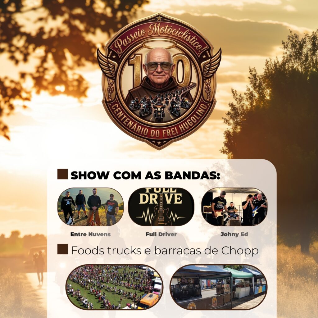 Mais do que um encontro de motociclistas, o evento é uma homenagem à trajetória e ao legado do Frei Hugolino Back, símbolo de fé, dedicação e amor ao próximo.