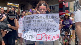 Vítimas de feminicídio foram lembradas durante a manifestação. (Crédito: Geisa Marques / Brasil de Fato)